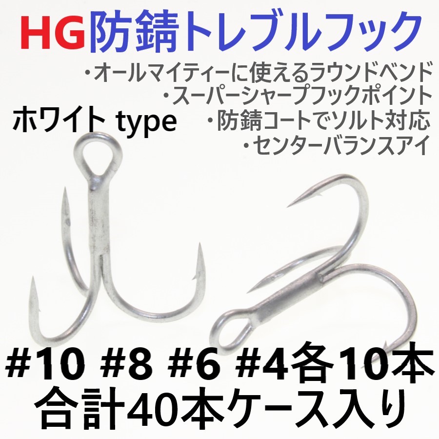 - 【送料180円】ハイグレード防錆トレブルフック ホワイト#10~4 合計40本セット ケース付き ソルト対応 トリプルフック