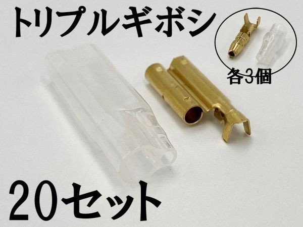 - 【矢崎総業 三又 三股 トリプル ギボシ 端子 スリーブセット+オス側 20個】 送料無料 国内メーカー 検索用) バイク カーオーディオ