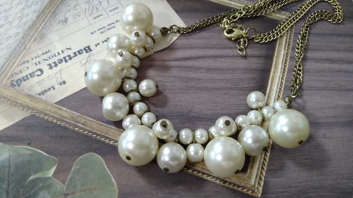 - □訳あり□華やかな存在感□パールビーズ・鈴なり・ネックレス□