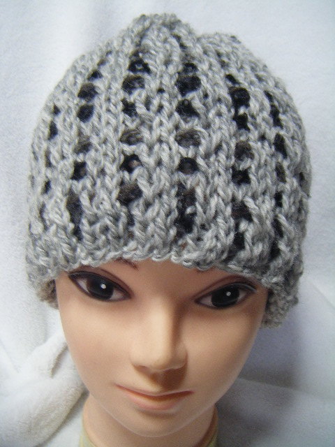 - 冬*手編男女兼用キャップ*薄灰にアクセント色 の1