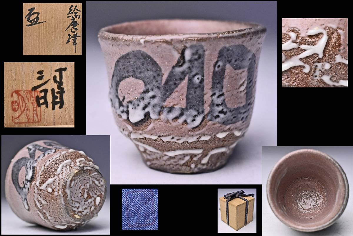 - 辻清明 ★ 絵唐津盃 ★ 共箱共布 ★ カイラギ見事 ★ 傑作ぐい呑 ★ 検:辻協 ★