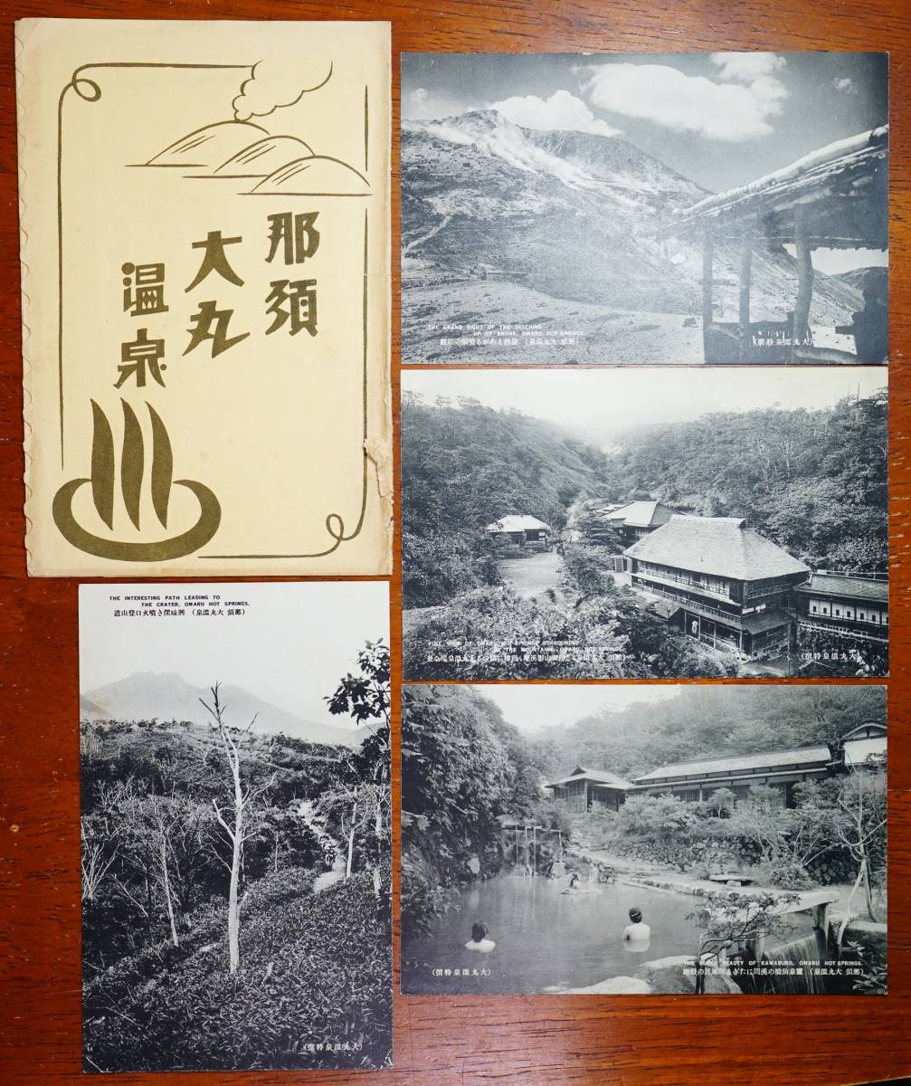 - 絵葉書 那須大丸温泉 モノクロ 4枚 袋付き 検:川風呂の野趣(川の湯)・混浴露天風呂・噴火口登山道・大丸温泉旅館・奥那須秘湯