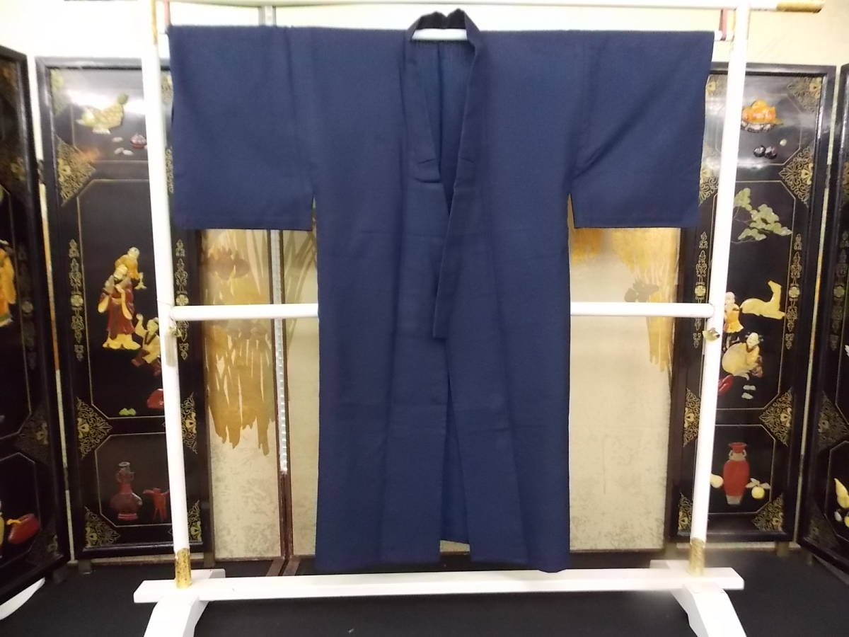 - きもの今昔2841 男の和服 ウール単衣仕立てきもの 濃紺モク柄 ウール100%