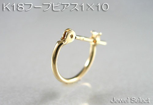 - K18 イエローゴールド 1×10 フープピアス 片耳用
