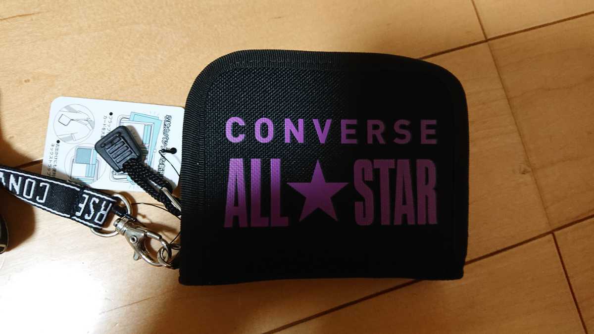 - 新品☆コンバース 二つ折り財布 子供 ネックストラップ付き パープル