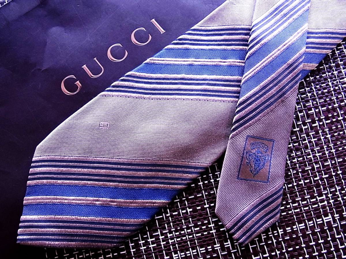 - ☆状態並N☆5663■グッチ【GUCCI】【ロゴ入/ストライプ】ネクタイ
