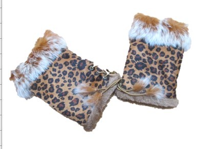 > 新品◎送料無料◎ラビットファー、スエード 指なしグローブ ふわふわでかわいい スマホも携帯も操作しやすい レオパードブラウン