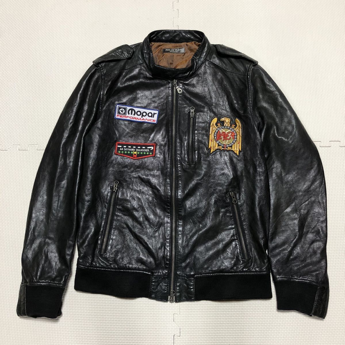 - ★ PHILIPP PLEIN フィリッププレイン スイス ラムレザー シングルライダース ジャケット