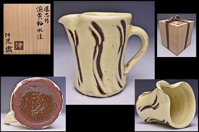 - 船木道忠 ★ 淡黄釉 指描 水注 ★ 舩木伸児 識箱 ★ 氏の息使いが聞こえてきそうな逸品 ★ 布志名焼 ★ 徳利 代わりにも ★ 検 舩木研兒