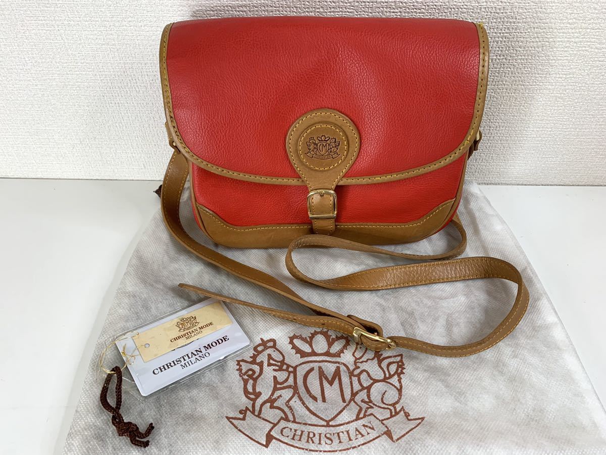- 美品▲CHRISTIAN MODE クリスチャンモード レザー ショルダーバッグ レッド 赤 巾着袋付 管理2109 棚9