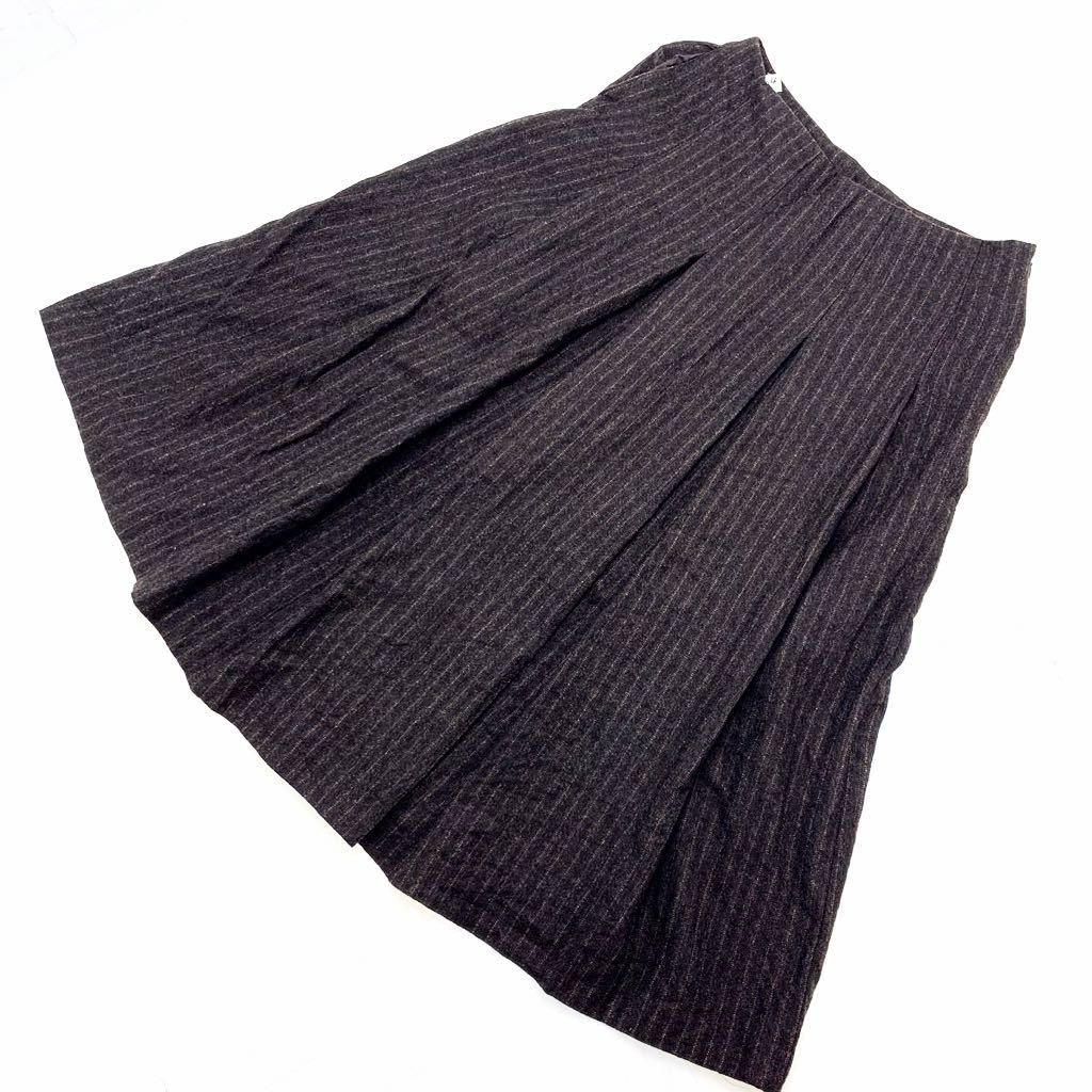 > マーガレットハウエル MARGARET HOWELL MHL. プリーツスカート フレアスカート ウール 1サイズ ブラウン 茶色 キレイめ♪■Ja2604