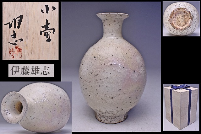 > 伊藤雄志 ★ 小壺 ★ 共箱 栞 ★ 師:日根野作三 / 富本五郎 ★ 粉引手で李朝陶器を思わせる雰囲気の逸品 ★ 徳利 にも ★ 常滑 ★