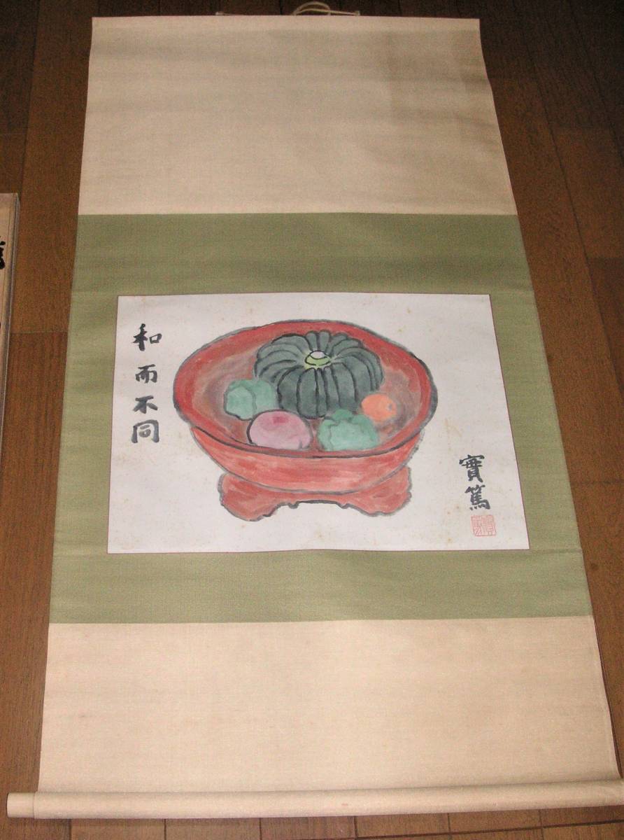 - 武者小路実篤 「和而不同」 疏菜図(掛軸、共箱)真作