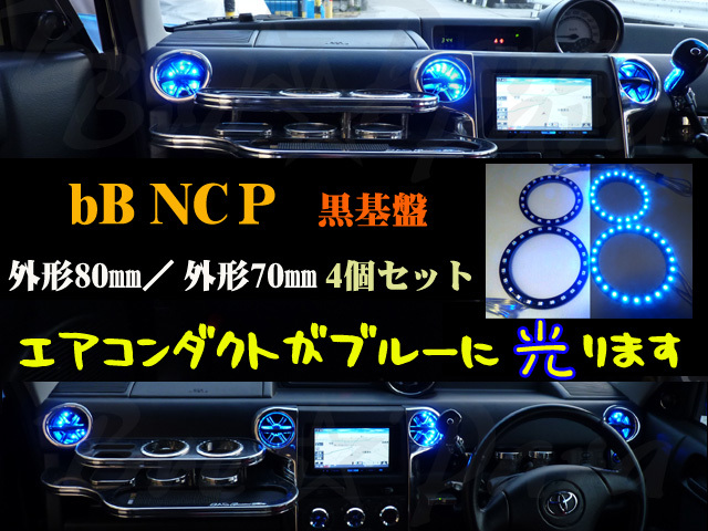 > ★bB NCP SMDエンジェルアイ 黒基盤 4個セット(70mm/80mm)ブルー イカリング エアコンダクト