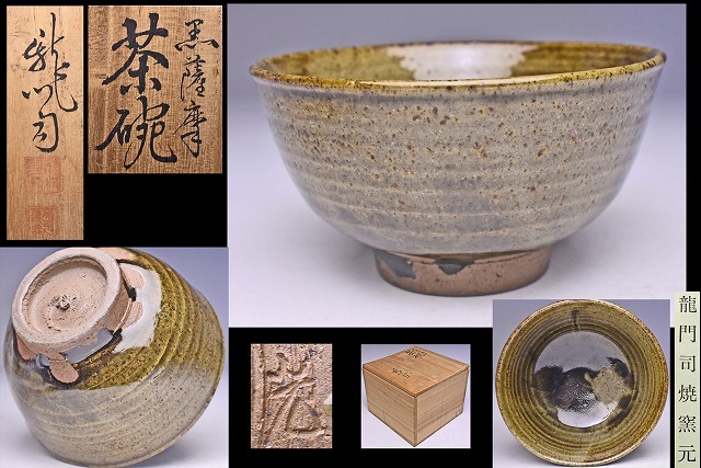 > 龍門司焼 ★ 黒薩摩茶碗 ★ 共箱栞 ★ 茶道具 ★ 検 白薩摩 くろもん ★ 灰釉の濃淡 ★ 鹿児島の 民窯 ★ 民芸