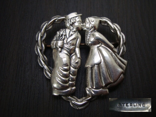 - ハートモチーフ シルバー ブローチ STERLING刻印 Kissing Couple