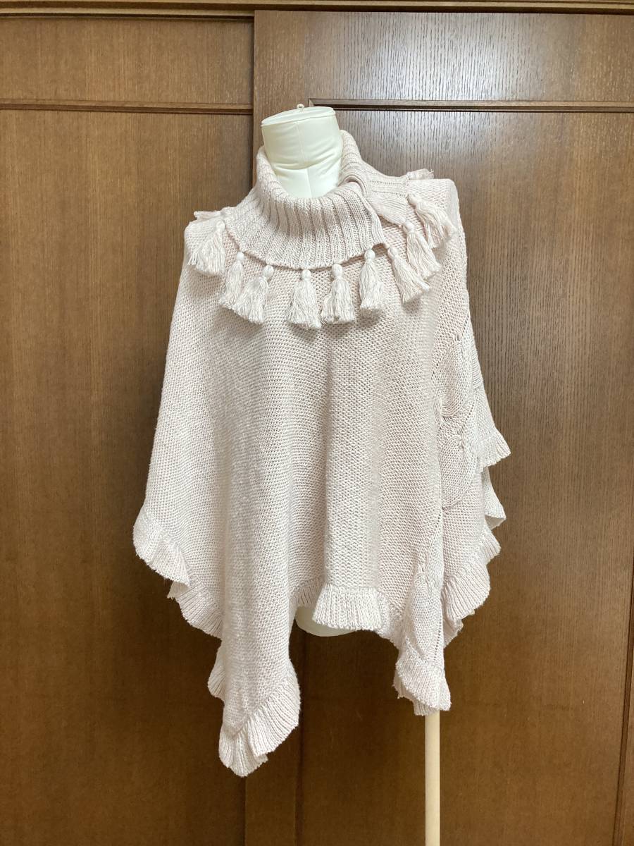 - TO BE CHIC トゥービーシック コート カーディガン ニット Fサイズ ベージュ系 レディース ポンチョ ケープ フリンジ ハイネック タートル