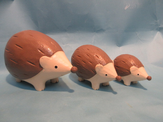 > polepole木彫動物人形親子 3体 ハリネズミ 天然木無垢材手作り・ヤスリかけ・手塗り仕上げプレゼントに如何 見るだけで癒されます