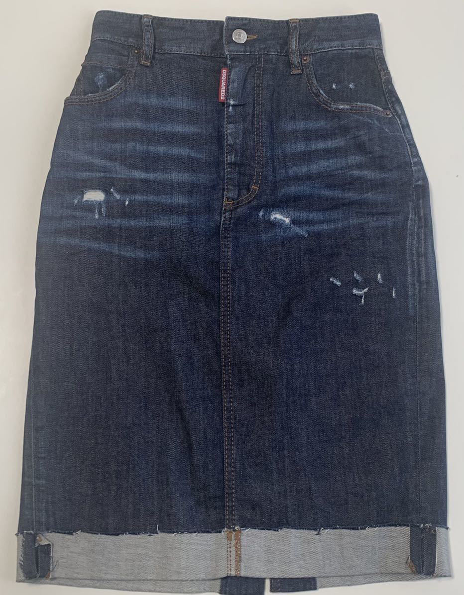 - 【ディースクエアード】美品 レディース ダメージ デニム スカート イタリア製 38 S~Mサイズ DSQUARED2 デニム ひざ丈スカート