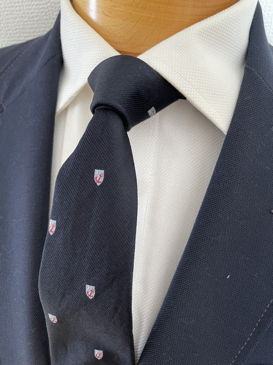 - 【美品】TRAD CLUBブラック 盾錨ポイント柄 ネクタイ 大剣約7.5cm シルク100%