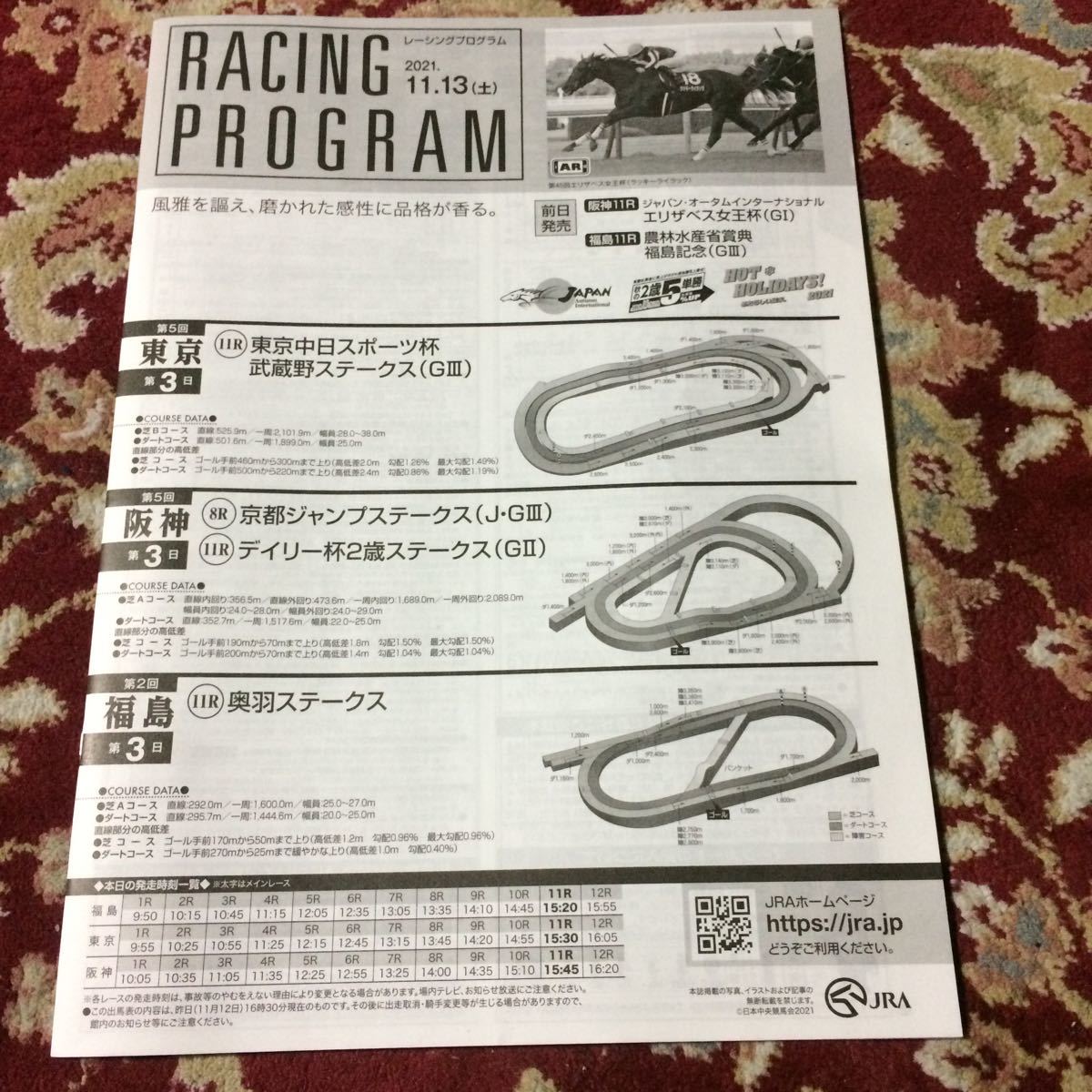- JRAレーシングプログラム2021.11.13(土)デイリー杯2歳ステークス(GⅡ)武蔵野ステークス(GⅢ)京都ジャンプステークス(J・GⅢ)奥羽ステークス