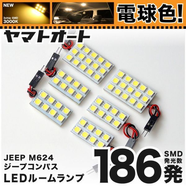 > ★電球色186発★ M624 ジープ 新型 コンパス JEEP LED ルームランプ 6点 暖色 3000K パーツ ライト JEEP COMPASS 内装品 パーツ GRANDE