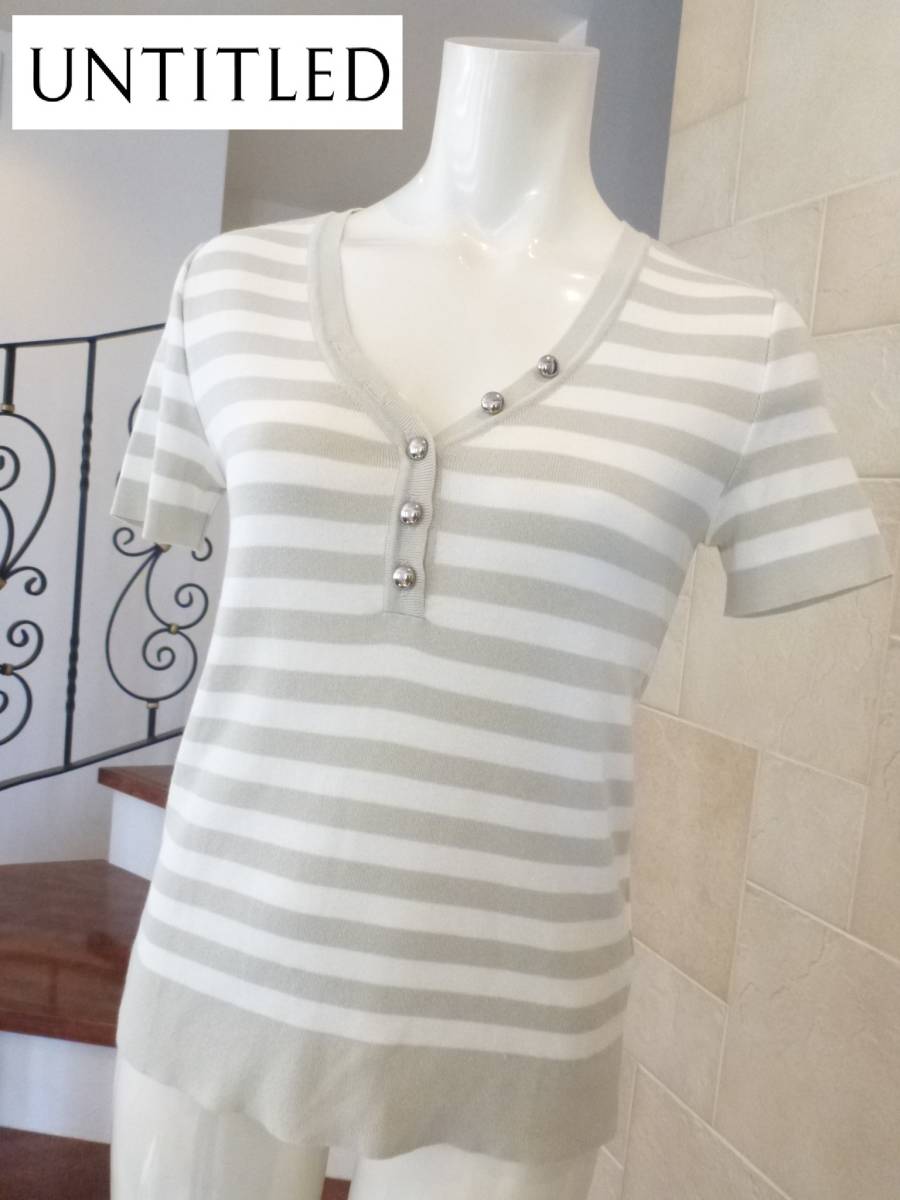 - 1.5万 美品 UNTITLED アンタイトル ★グレイジュ×白 半袖ニット 2 M相当
