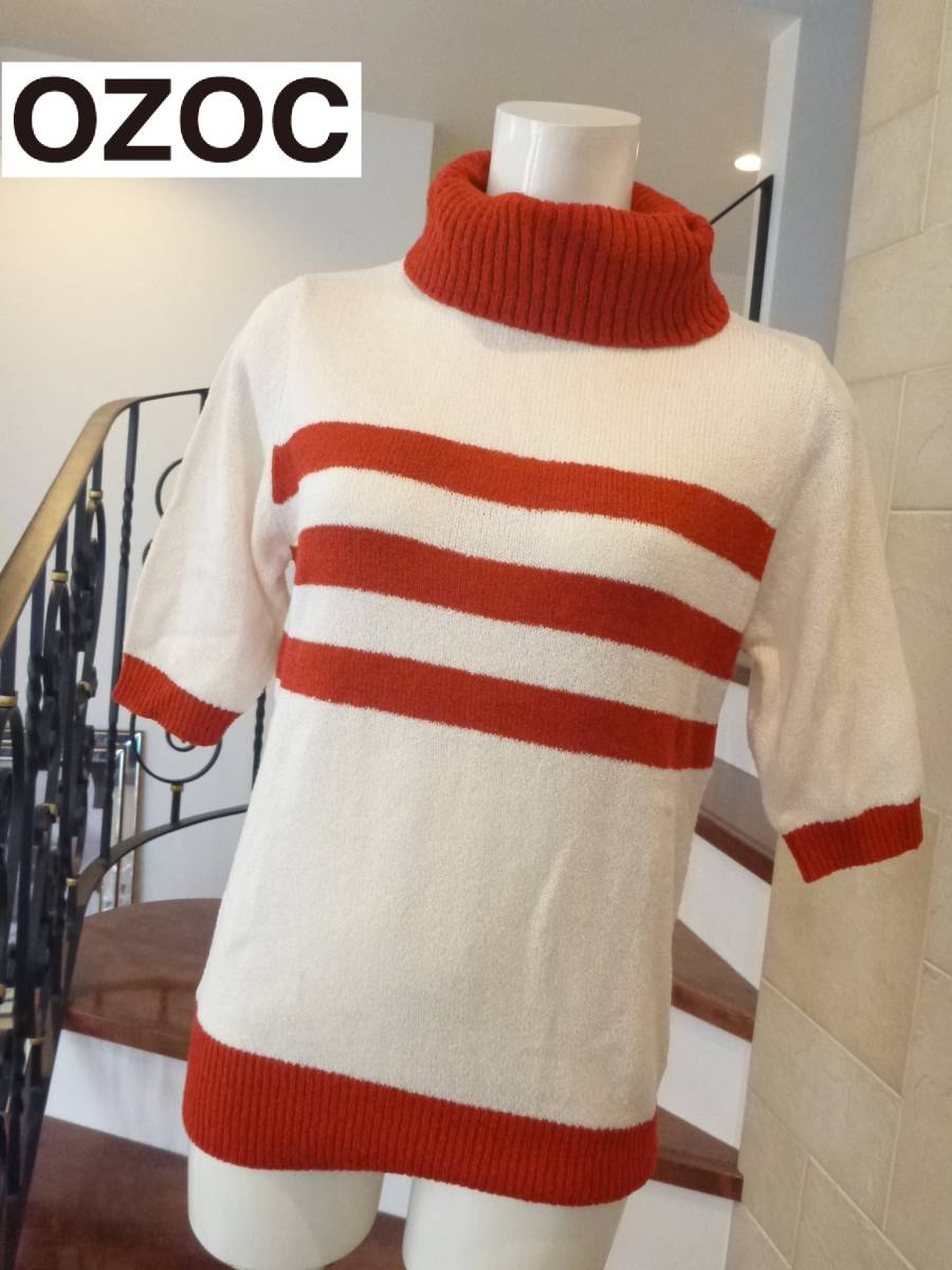 - ¥5990 新品 OZOC(オゾック) ★赤×白 タートル 半袖セーター M