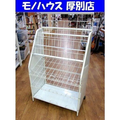 札幌市内近郊限定 マガジンラック 店舗用 什器 幅77cm ディスプレイ ブックスタンド ホワイト 白 キャスター付き 札幌市 厚別区