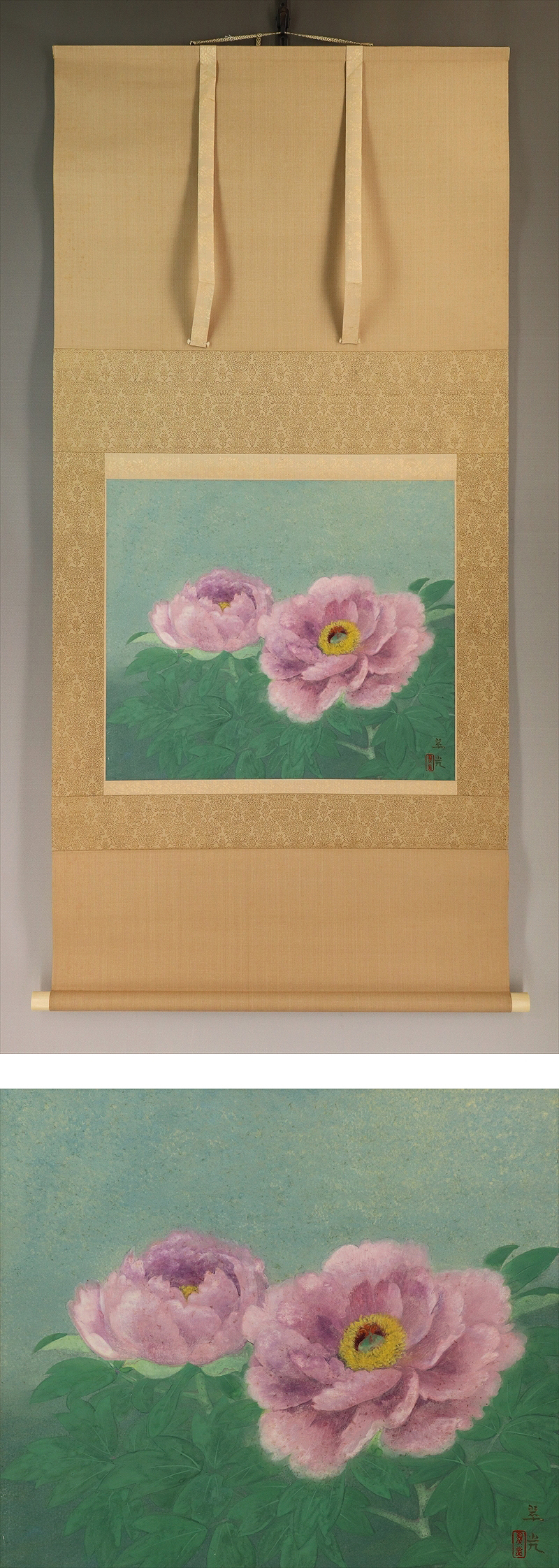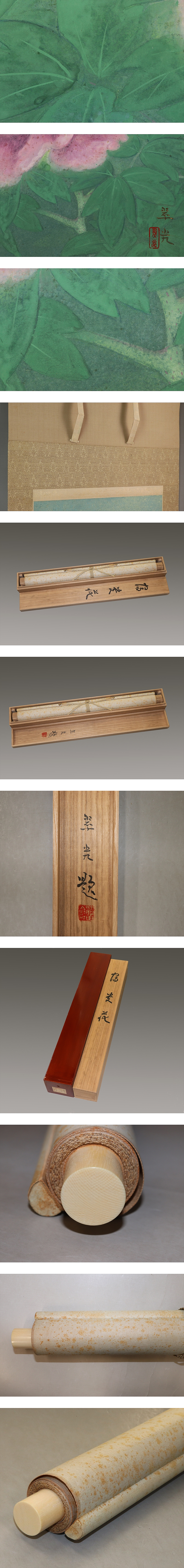 - 名品【真作】福田翠光【富貴花】◆紙本◆共箱◆二重箱◆太巻掛軸 v10097