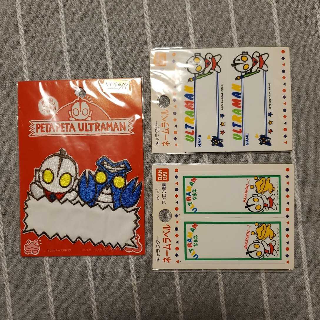- 【激レア新品未開封】 BANDAI ウルトラマン アイロンワッペン 3種セット / 円谷プロ 1992 アップリケ ネームラベル 光の国 当時物
