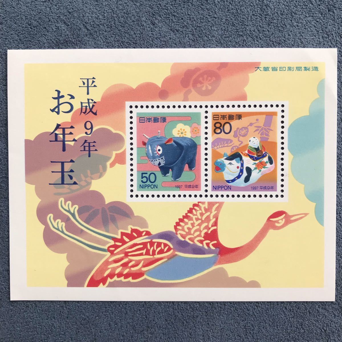 > 年賀切手「平成9年 お年玉切手 小型シート 1枚」50円/80円★1997年発行・長期保管品