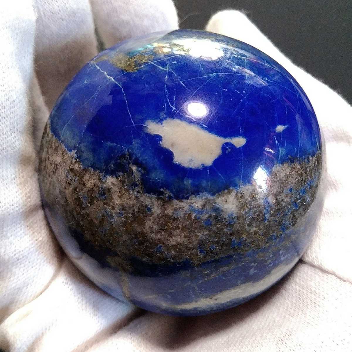- ②303g 57mm ラピスラズリ 丸玉 スフィア 高品質 アフガニスタン パイライト スノーフレークラピスラズリ 原石
