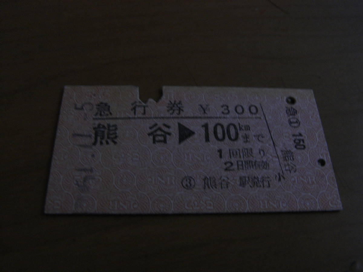 - 急行券 熊谷→100㎞まで 昭和51年11月5日 熊谷駅発行