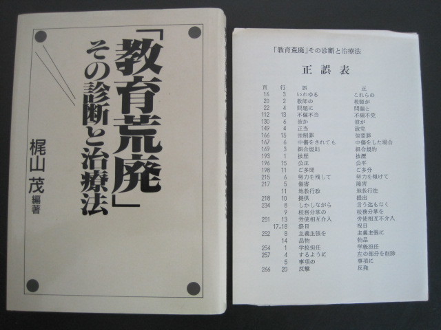 - 「教育荒廃」その診断と治療法 正誤表付き 医学博士梶山茂編著 社団法人全国教育問題協議会 昭和62年発行 送料無料