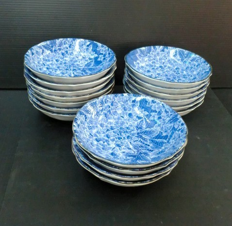 > ★ 76990 中鉢 「 紫陽花 」17枚セット Φ16xH4.3cm 浜九郎 陶器 陶磁器 和食器 鉢 小鉢 中古 ★*