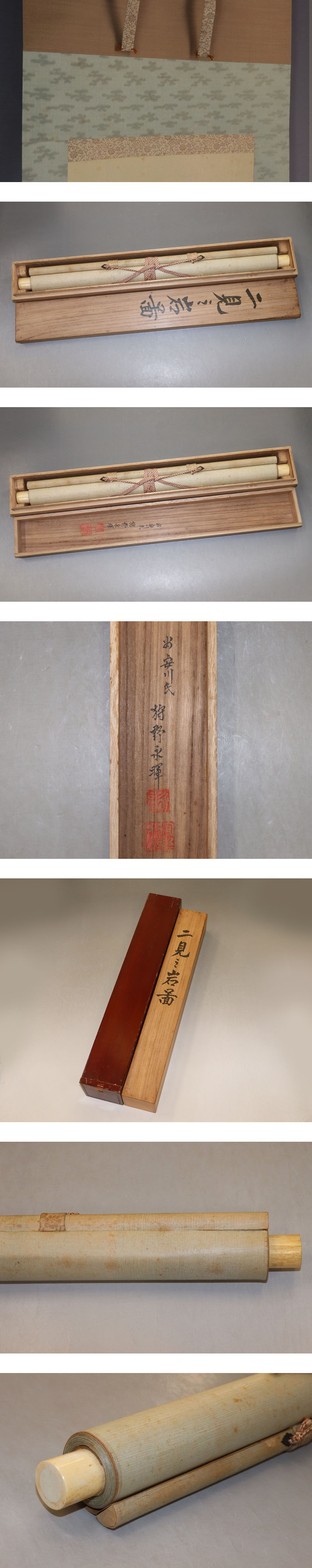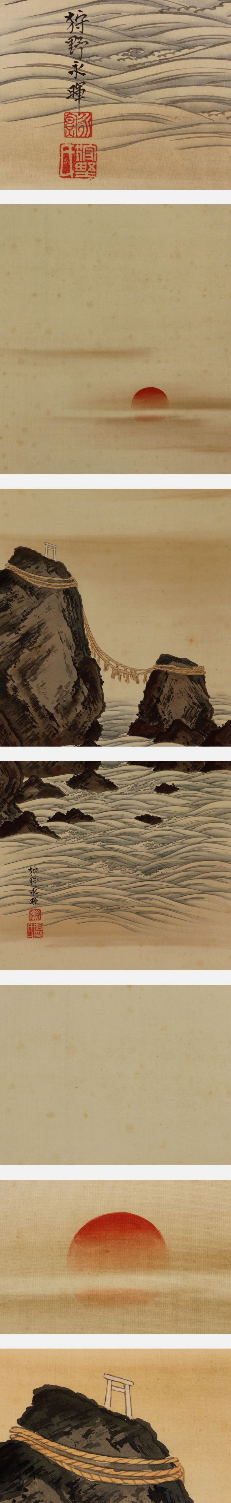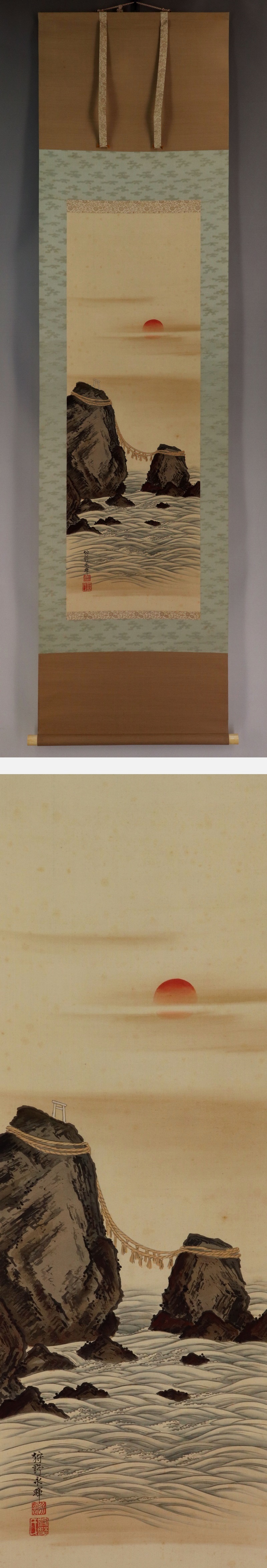 - 【真作】狩野永暉【二見之岩図】◆絹本◆共箱◆二重箱◆掛軸 v11108