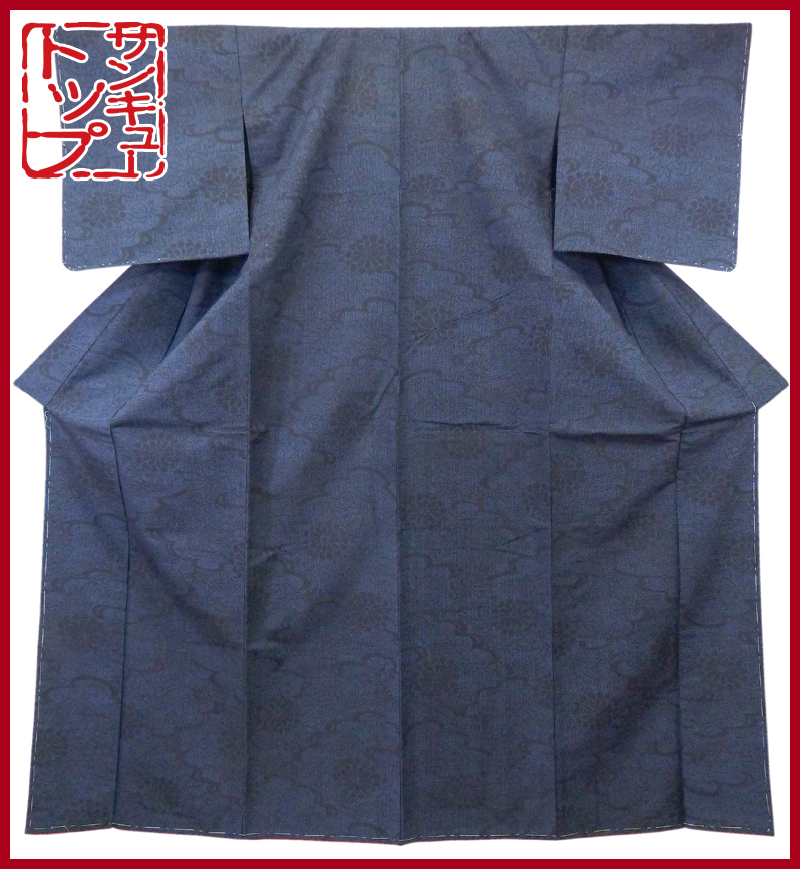> 【店頭価格7000円の品 在庫処分 大幅値下げ】☆質:39トップ 着物館 618 小紋 紬 単衣 花文様 中古 気軽な普段着として