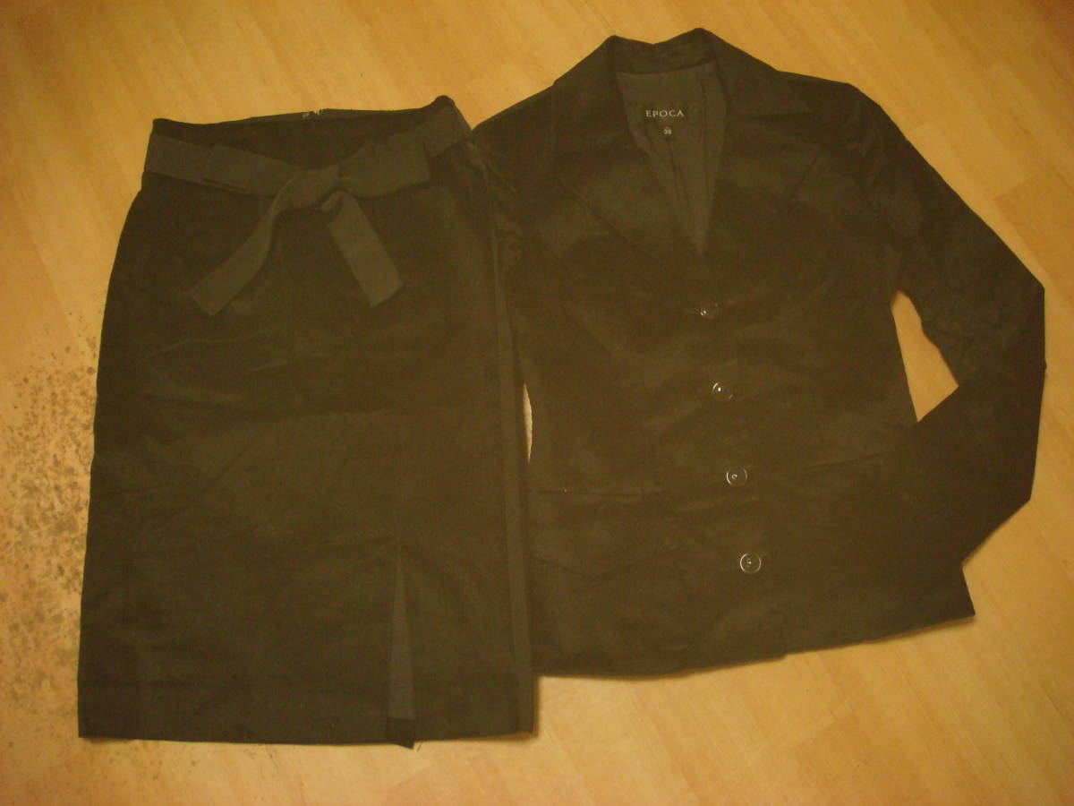 - EPOKA エポカ スエード調ベロア素材 デザイン スーツ おリボン付き ジャケット&スカート セットアップ 黒