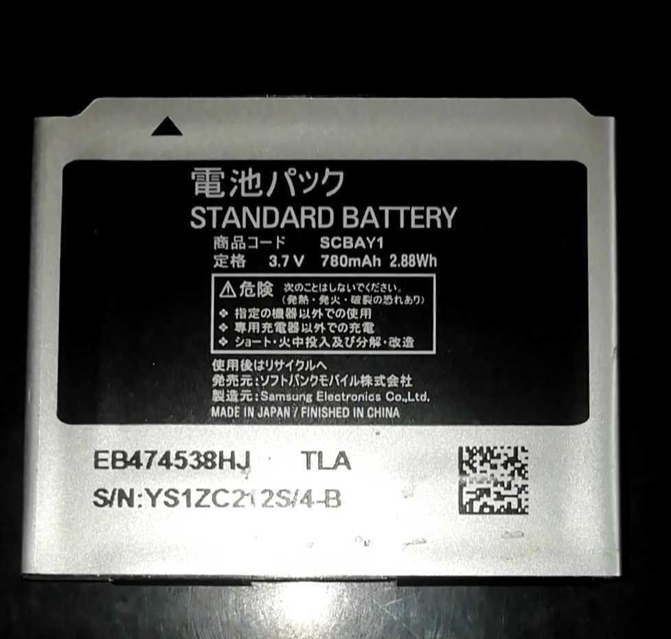 - 【中古】ソフトバンクSCBAY1純正電池パックバッテリー【充電確認済】対応機種(参考)001SC
