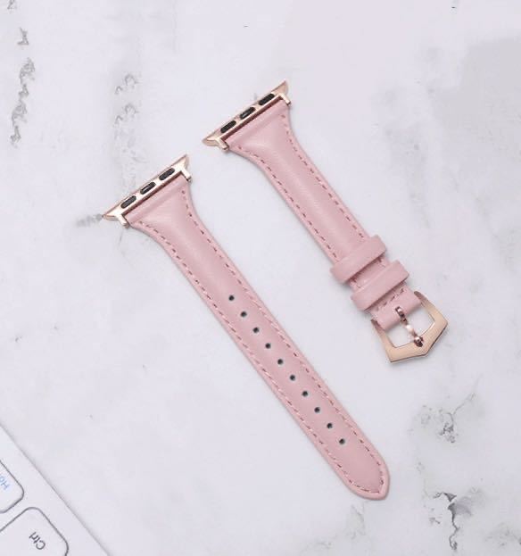 - Apple Watch アップルウォッチ バンド 革ベルト レザーベルトレディース スリム型 42/44/45/49mm シリーズ2345678SE対応 ピンク