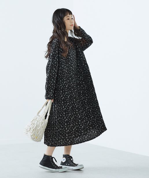 - 新品タグ 未着 pual ce cin ピュアルセシン【WEARISTA yukiさん着用】小花プリントプリーツワンピース2020SS サイズF 黒 定価、12.000+税