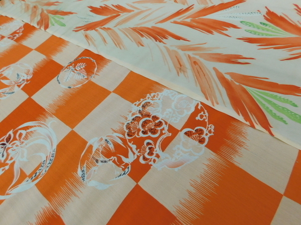 > 〔楽布〕P8000 錦紗裂 2種 古布古裂 大正ロマン 約150cm k