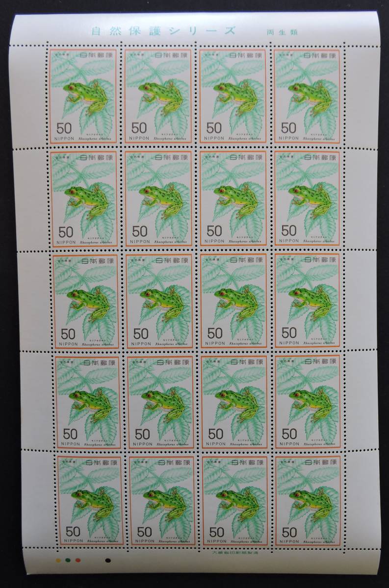> 日本切手ー未使用1977年自然保護シリーズ第3集モリアオガエル50円*20枚 全面シート 1シート