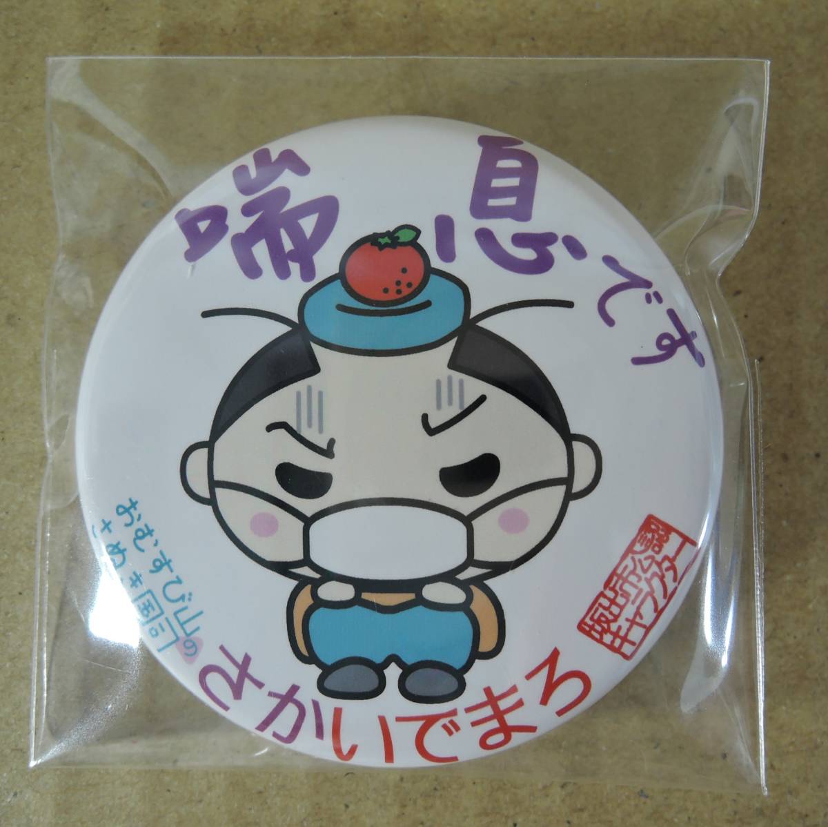 - ☆03E-1■おむすび山さぬき国司 さかいでまろ 缶バッジ 喘息です■香川県坂出市/ゆるキャラ 未開封