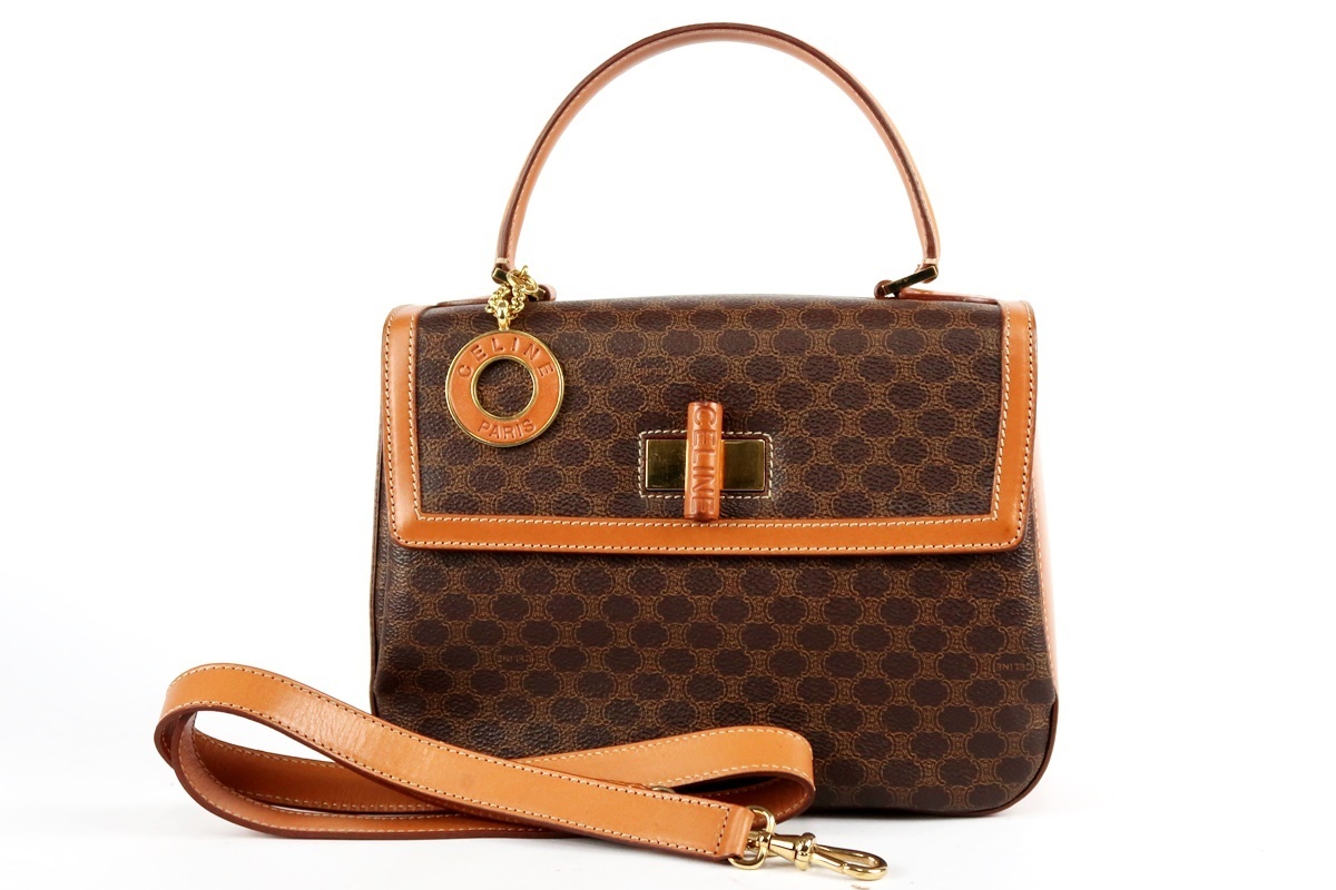 - 【美品】CELINE セリーヌ マカダム 2WAYショルダーバッグ ブラウン系 ブランド鞄【KN98】