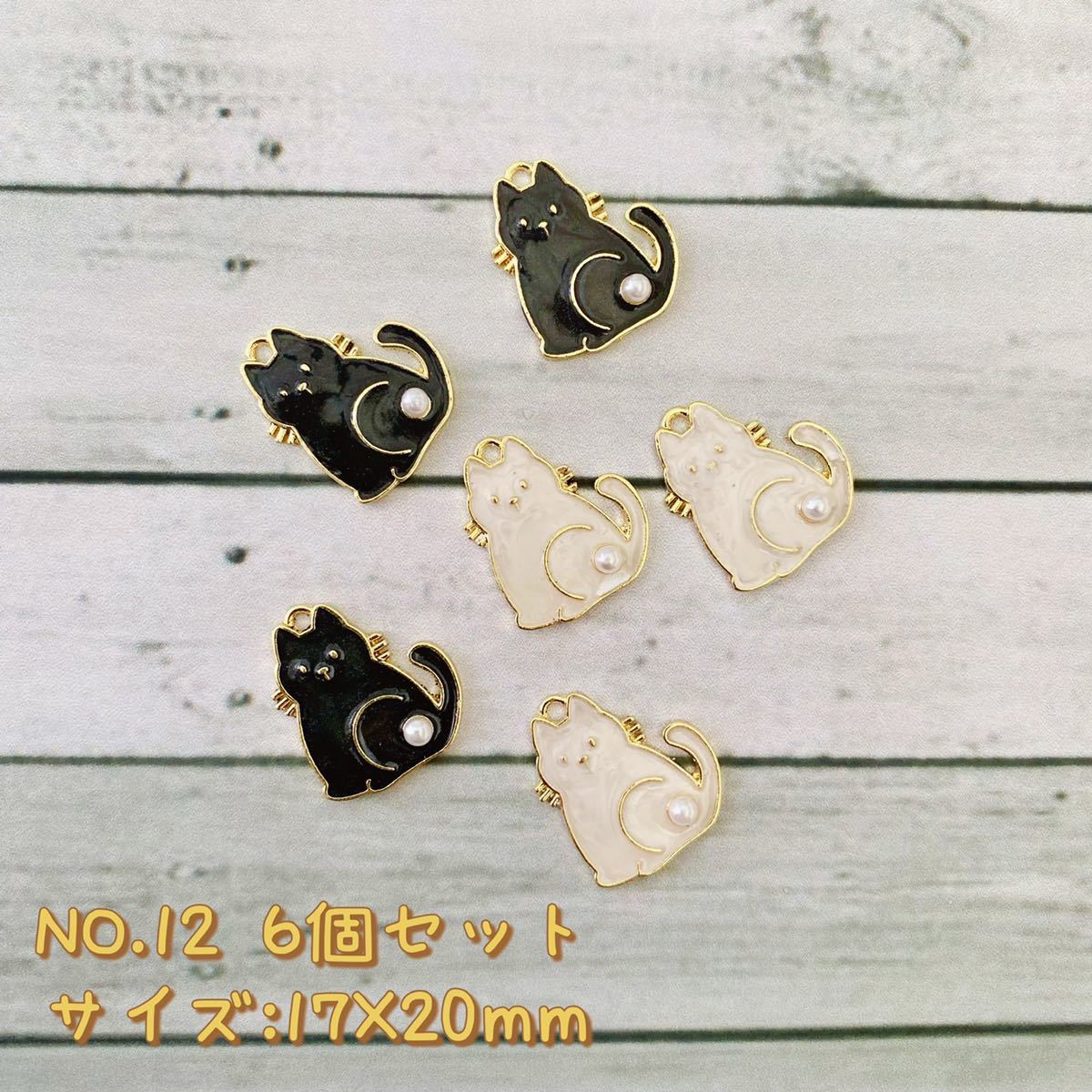 - 6個セット・チャーム ★黒猫&白猫&パール