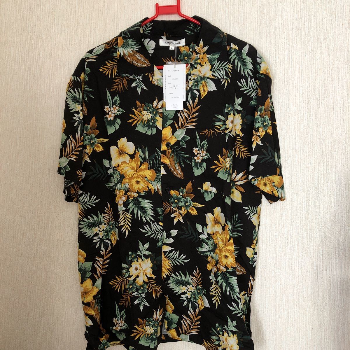 - ハイビスカス × リーフ柄シャツ アロハシャツとして Lサイズ