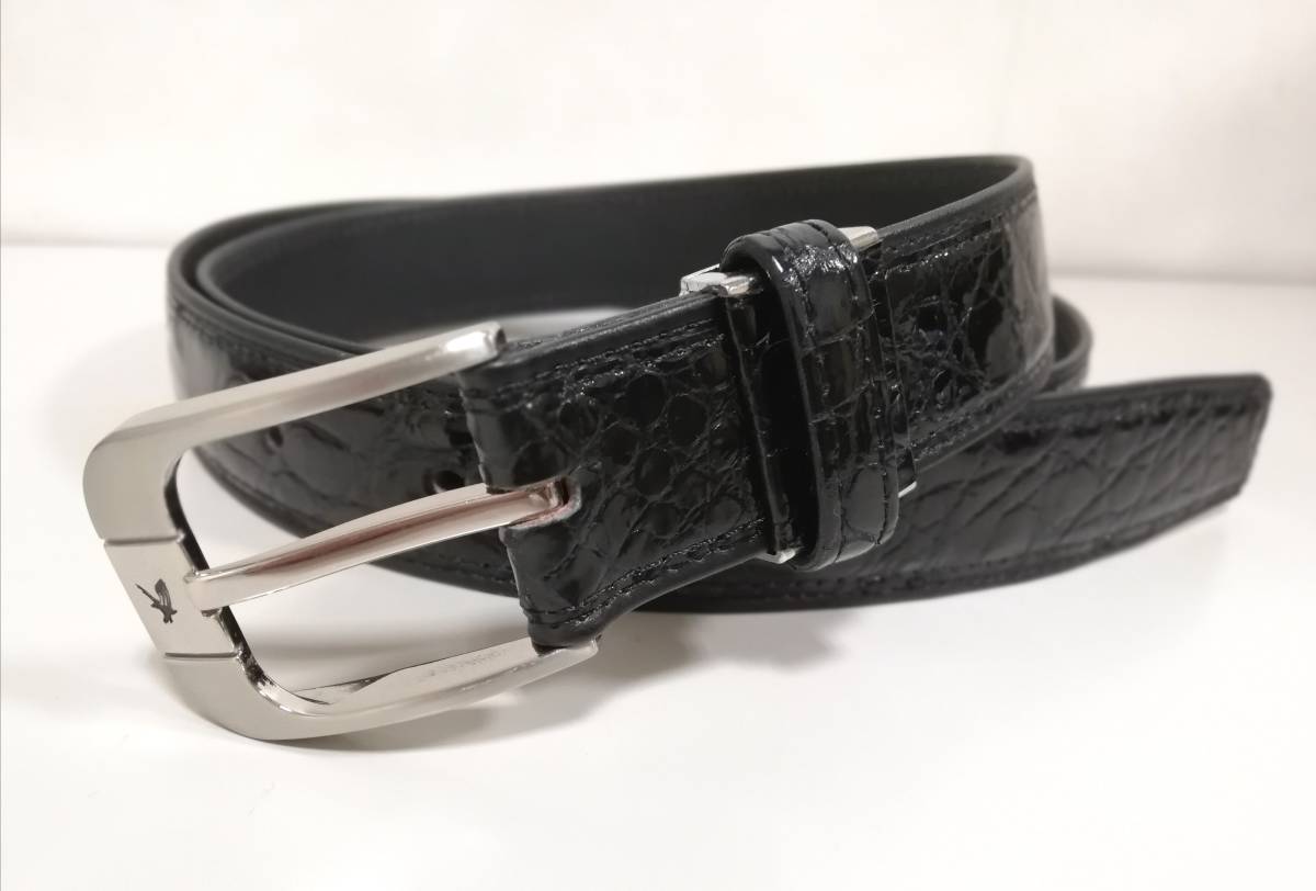 - 【質屋 尾張屋商店 東京】 (3749)☆未使用/訳あり☆ 本物 クロコダイル 本革 レザー ベルト 黒