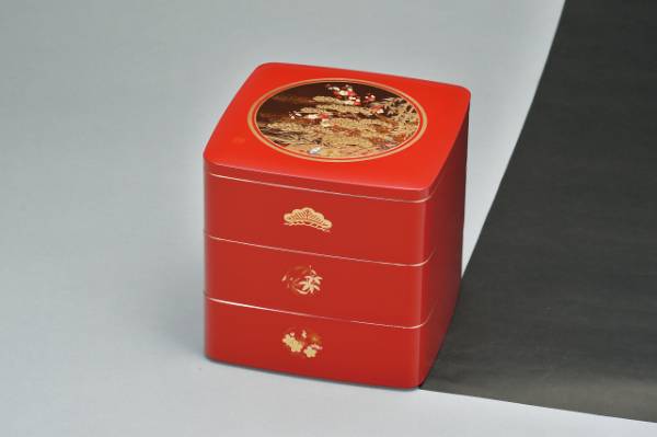 - 《只今!20%値下げ中》濱田屋【創作漆器】松竹梅 5.0都三段重 赤